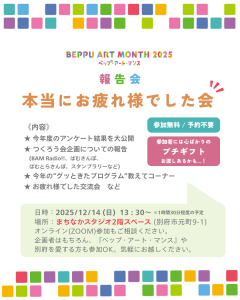 企画者のみなさまだけでなく、ベップ・アート・マンスに興味のある方どなたでもご参加いただけます。
