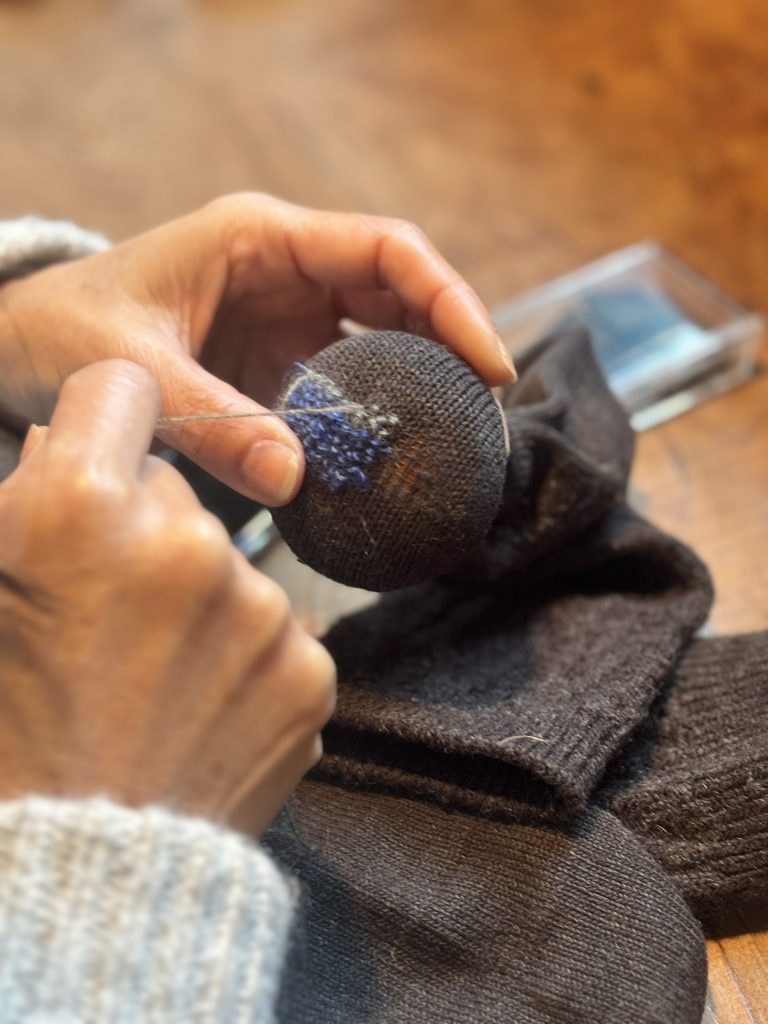 ダーニング(繕い刺繍)の講師によるWS。