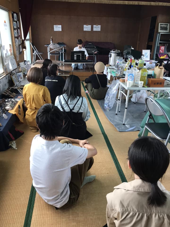 静岡に引っ越しても別府に戻ってくる湯本タマと別府の名士・ライスボール山本。毎年いろいろな人とコラボしています。飛び入り歓迎!紙屋カオスの後は清島アパートへGO!