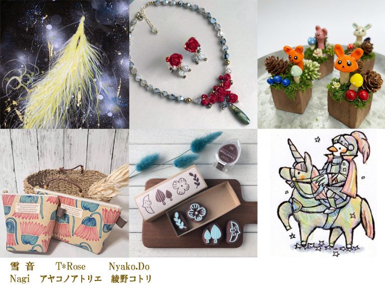 6名の作家の絵画、布小物、消しゴムハンコ、アクセサリーがひとつの空間に集結する、7日間限りの幻の癒しのGallery&雑貨屋さん。