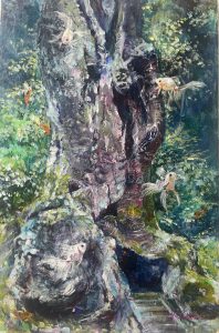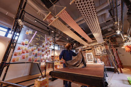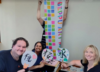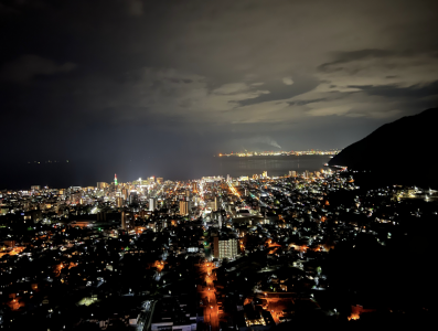 凪砂が去年より少しずつ刺繍を使って別府を布の上に表現してきました。
