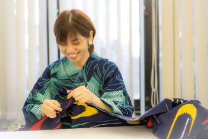 別府で50年以上着物のお仕立て、和裁士育成、和裁の認知度向上をおこなう庚申和裁研究所で勉強中の浅野凪砂が制作。浅野は自閉症を持ちながらも、一流の和裁士を目指す。
